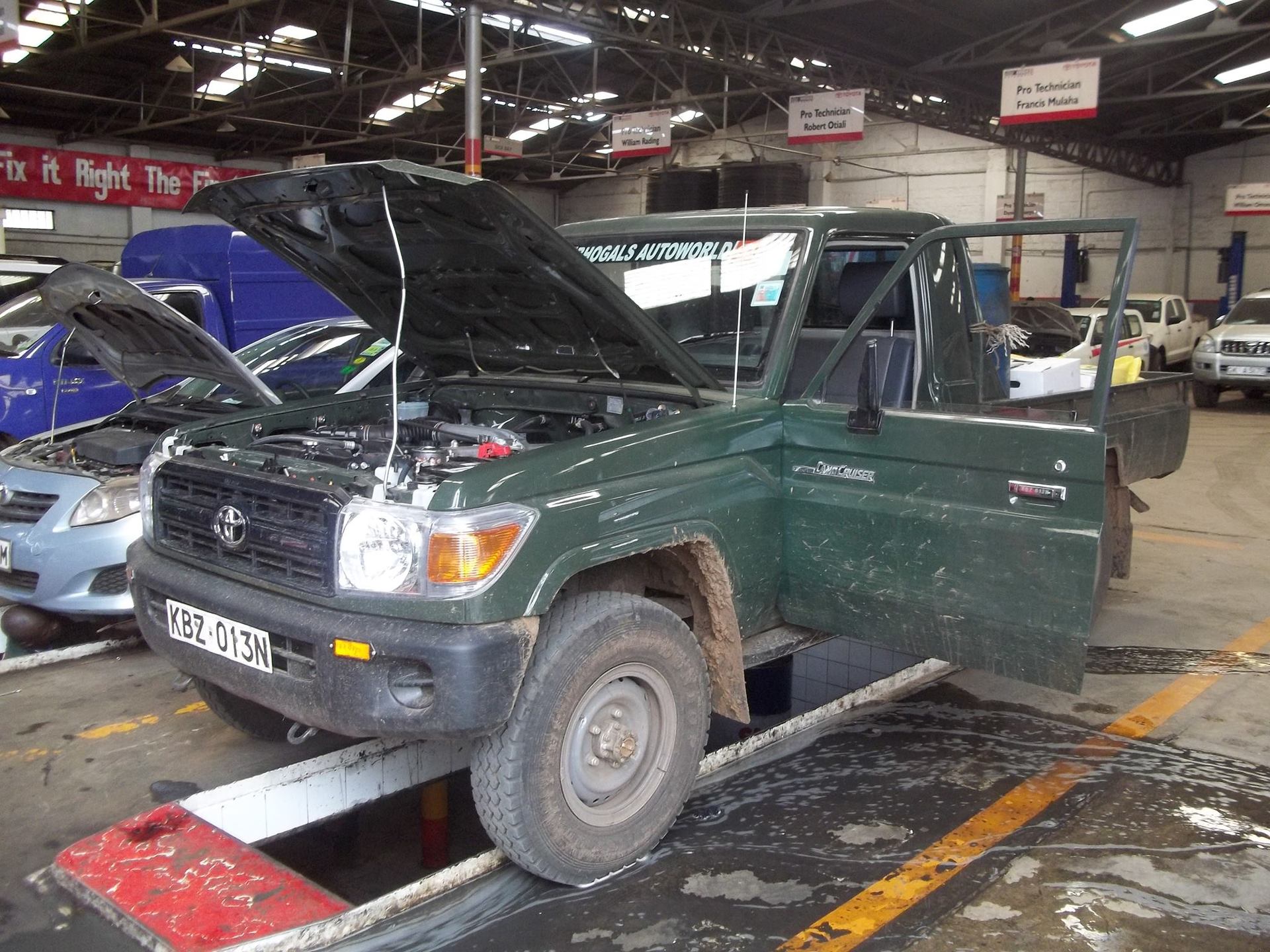 Our Service teams at Both Nakuru and Narok Dealerships consists of highly qualified and motivated professionals, who are all experts in their field. With many years of experience in the industry, they have the expertise to provide comprehensive, first-rate services to our Toyota clients. Our Service Department is capable of handling light to heavy vehicle repair works, including Electrical & Aircon repairs, Wheel Aligning and Wheel Balancing. It also has a Express Maintenance Solution that caters for quick service, including change oil, tune-up & others, periodic maintenance procedures. Our fully trained and highly motivated technicians can handle any job, from routine servicing to major component overhauls.